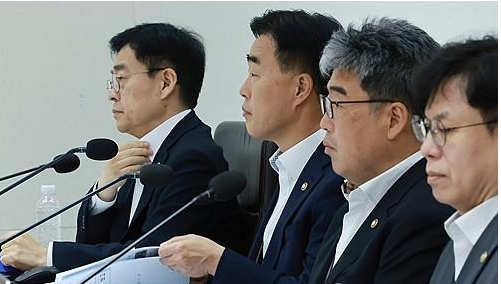 장동언 기상청장(왼쪽부터), 허석곤 소방청장, 임상섭 산림청장이 15일 용산 대통령실 청사에서 열린 국무회의에 배석하고 있다. 2025.7.15