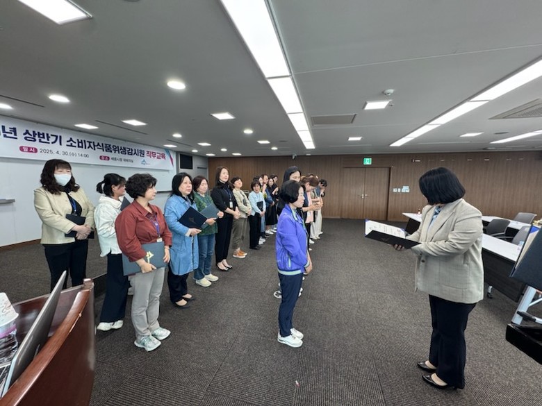 [세종 세계타임즈=이채봉 기자] 세종특별자치시(시장 최민호)가 30일 시청 대회의실에서 소비자식품위생감시원 위촉식 및 직무교육을 실시했다.