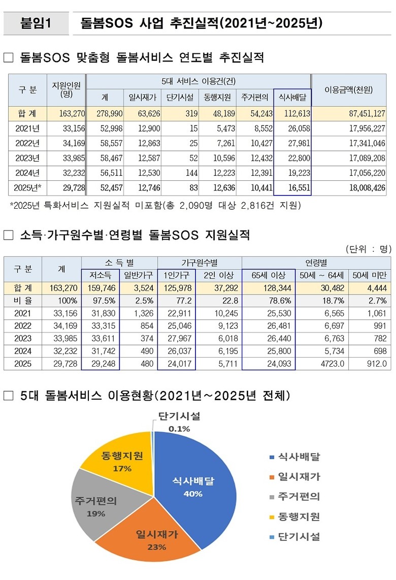 한편, 시는 그동안 돌봄SOS가 도움을 필요로 하는 시민들에게 실질적인 도움이 될 수 있도록 정책을 수정·보완해 왔다.