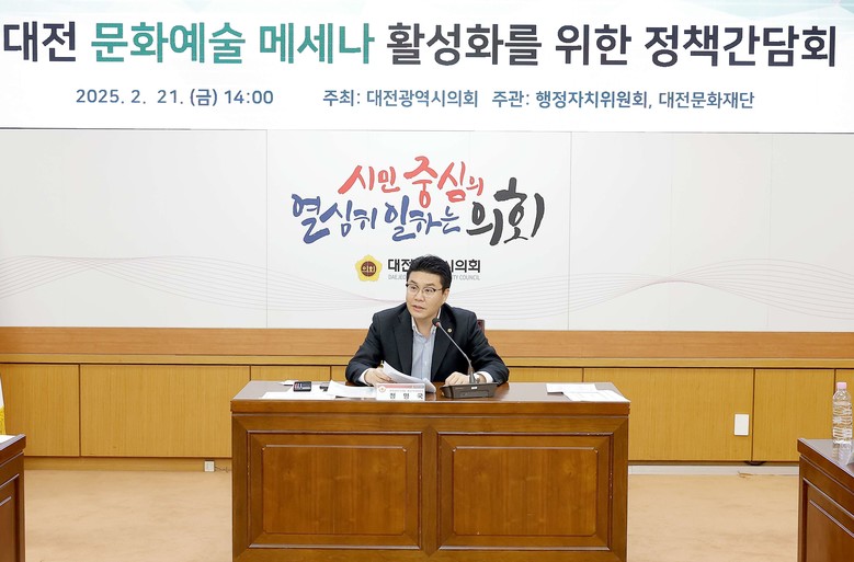행정자치위원회 정명국 의원(국민의힘, 동구3)이 좌장을 맡은 이번 간담회는 메세나(Mecenat)를 통해 기업들의 사회적 공헌 창구를 마련하고 나아가 대전 문화예술계의 지속가능한 발전지원 전략을 모색한다는 점에서 큰 관심을 모았다.