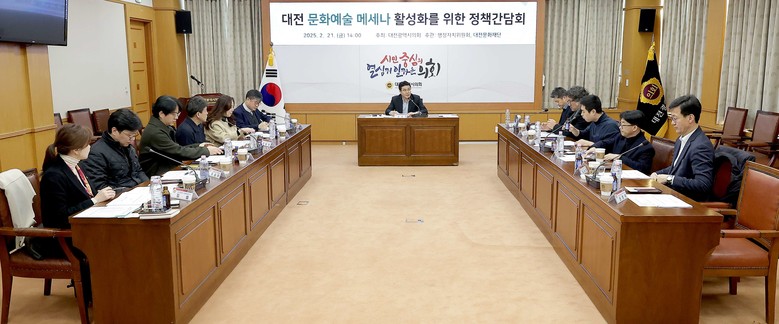 [대전 세계타임즈=이채봉 기자] 대전시의회는 21일 오후 2시 시의회 소통실에서 ‘대전 문화예술 메세나 활성화를 위한 정책간담회’를 개최했다.