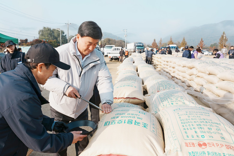 이날 수매 현장에는 지역 농가 36곳이 참여해 1년간 정성껏 재배한 벼의 등급을 판정받고 수송 등 공공 비축을 위한 매입 절차를 진행했다.