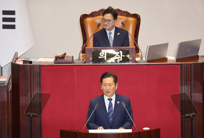 [세계타임즈 = 심귀영 기자] 더불어민주당 정청래 대표가 9일 국회 교섭단체 대표 연설에서 어김없이 '내란 청산'을 재차 강조하고 나섰다.내란 세력과 헌법 파괴 세력을 청산하겠다며 제1야당인 국민의힘의 반성과 사과를 촉구하는 한편 '사과 없이는 협치도 없다'는 입장을 재확인했다.