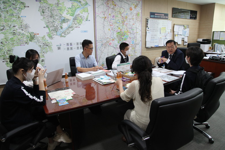 [세종 세계타임즈=이채봉 기자] 세종특별자치시의회 유인호 의원(보람동, 더불어민주당)은 19일 세종시 상가 공실률 문제를 수행과제로 선정하고 의회에 방문한 해밀고등학교 1학년 이용현 학생 외 3명과 유쾌하고 당돌한 인터뷰를 진행했다.