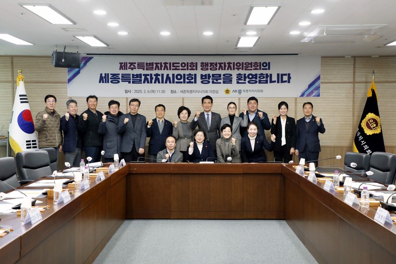 6일, 세종시의회를 방문한 제주도의회 행정자치위원회(위원장 박호형)는 세종시의회 행정복지위원회(위원장 김현미)와 행정체제개편을 위한 정책동향 및 의정지원 강화 방안에 대해 공유하는 시간을 가졌다.