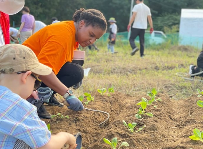 | ▲아임히얼의 에그 캠페인 참가자들이 텃밭 가꾸기 활동을 하고 있다. |