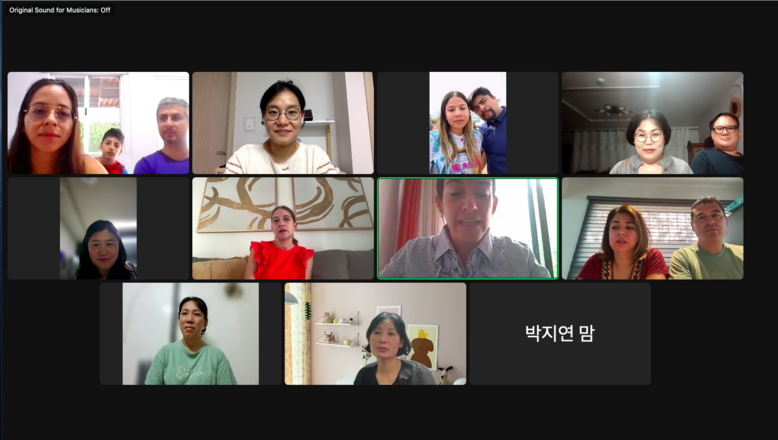 | ▲ 서해중학교 참가 학생 학부모님들과 Liceo de Apodaca 홈스테이 가정 온라인 간담회 |