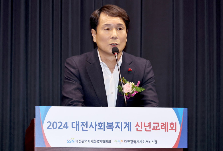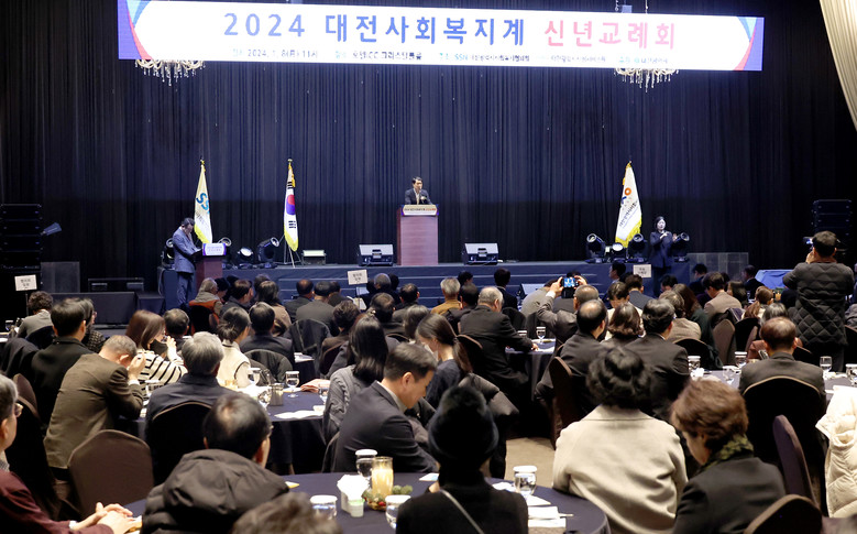 [대전 세계타임즈=이채봉 기자] 대전시의회 이상래 의장은 8일 호텔ICC에서 개최된 ‘2024년 대전사회복지협의회 신년교례회’에 참석해 대전사회복지협의회 장창수 회장을 비롯한 임직원 및 내빈들과 새해 인사를 나눴다.