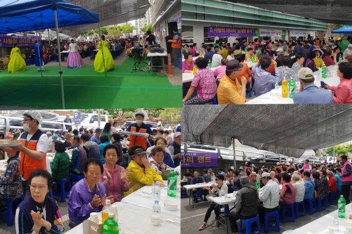 이득범 홍도동장은 “오늘 사랑의 사다리 밴드에서 삼계탕과 위문공연 봉사를 지원해주셔서 경로잔치가 성대하게 마무리 되었다.“면서 감사함을 전했다.