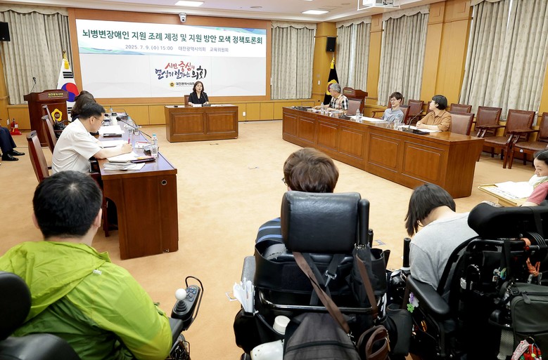[대전 세계타임즈=이채봉 기자] 대전시의회 교육위원회는 9일 시의회 소통실에서 김민숙 의원(더불어민주당, 비례대표) 주재로 ‘뇌병변장애인 지원 조례 제정 및 지원 방안 모색 정책토론회'를 개최하고, 맞춤형 지원정책 수립을 위한 공론의 장을 마련했다.