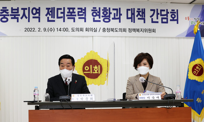 이 자리에는 박문희 의장, 이숙애(청주1) 의원, 충북젠더폭력방지협의회 관계자 등 10여명이 참석해 충북지역의 젠더폭력 현황과 문제점을 공유하고 여성폭력방지시설의 처우개선 등에 대해 논의했다.