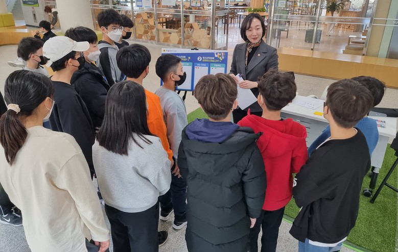 김효숙 의원은 23일 남세종청소년센터 1층 로비에서 ‘청소년의회 설문조사’를 진행하고 시의원의 역할과 활동, 청소년의회 조례 제정의 의미 및 절차 등 전반적인 설명과 함께 청소년들의 생각을 수렴했다.