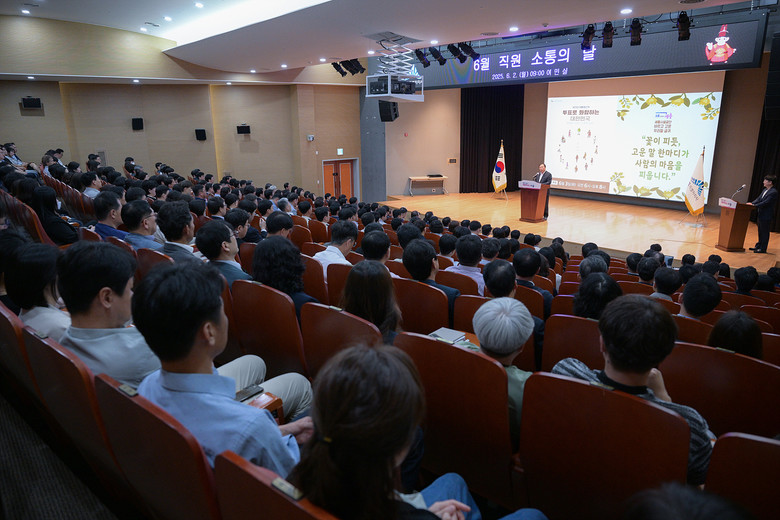 최민호 시장은 2일 시청 여민실에서 직원 300여 명이 참석한 가운데 열린 6월 직원 소통의 날 행사에서 공화국이 시작된 역사를 통해 투표의 가치를 설명하고 직원들에게 투표 참여를 독려했다.