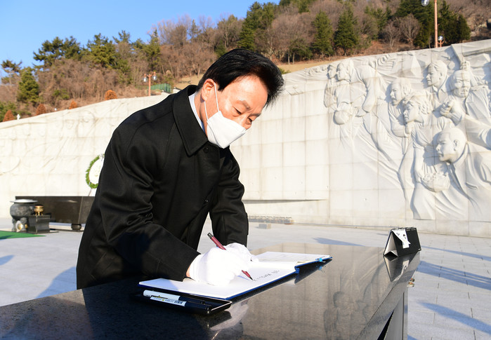 [경남=세계타임즈 최성룡 기자] 경남도의회 김하용 의장은 4일 김경수 경상남도지사와 함께 국립 3‧15 민주묘지와 창원 충혼탑을 방문하여 참배하고, 새해 첫 의정활동을 시작했다.