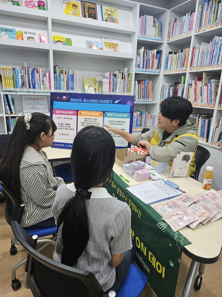 [세계타임즈]최성룡기자 =경상남도(도지사 박완수) 출연 기관인 경상남도청소년지원재단(원장 박춘덕)과 경상남도일시청소년쉼터(소장 최문주)는 이주배경청소년을 대상으로 한 찾아가는 거리상담을(6월14일(토)) 경상남도가족센터 토요학교 거리상담을 실시한 데 이어 6월18일(수)는 김해글로벌청소년센터와의 연계를 통해 연속적인 찾아가는 거리상담 활동을 이어가고 있다.