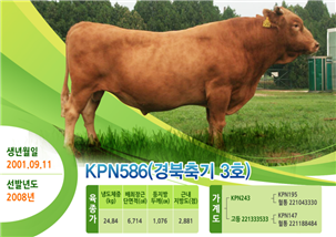 연구소에서 당대검정을 거쳐 선발된 후보씨수소가 보증씨수소(KPN)로 최종 선발될 경우, 경상북도 자체명호(경북축기 OO호)를 사용할 수 있고, 총 정액 판매량의 50%를 우리 도가 확보할 수 있다.