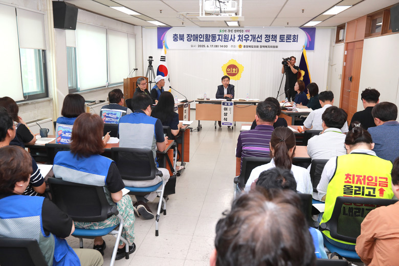 [충북 세계타임즈=이현진 기자] 충북도의회 정책복지위원회(위원장 이상식)는 17일 도의회 회의실에서 ‘충북 장애인활동지원사 처우개선 정책토론회’를 개최해 열악한 노동환경에 놓인 활동지원사의 실태를 진단하고 처우개선 방안을 모색했다.