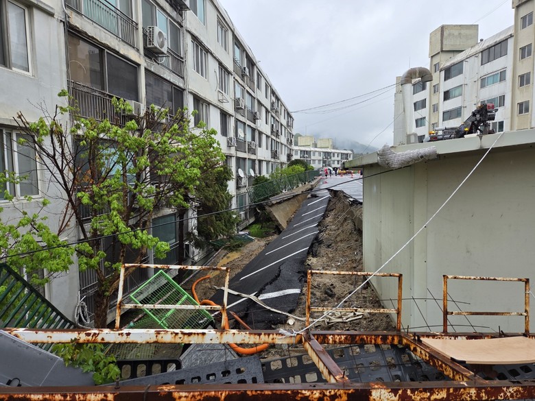 시는 이번 사고가 우천으로 지반이 약해지고, 우수관로를 따라 토사가 유출되면서 주차장 옹벽이 붕괴한 것으로 보고 있다.