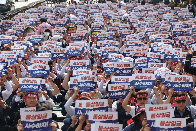 노조는 "통상임금에 해당할 수 있는 정기상여금 등은 절대 포기할 수 없는 조합원의 권리"라며 "정당한 권리에 대한 포기만을 요구한다면 노조는 5월 28일 전면파업에 나설 수 밖에 없다"고 강조했다.박점곤 서을시버스노동조합 위원장은 "서울시와 (사측인) 서울시버스운송사업조합은 우리를 길거리에 내몰고 있다"면서 "저들은 노동자들을 버스 교통 운영의 주체이자 공동 운명체가 아닌 값싸게 부리는 하인으로 취급한다"고 비판했다."조합원 권리를 포기하게 하는 임금체계 개편에 절대 합의할 수 없다"며 "서울시와 그 하수인인 사용자 단체에 경고한다. 우리가 멈추면 서울이 멈춘다"고 목소리를 높였다.임금·단체협약(임단협) 협상의 최대 쟁점은 통상임금이다.