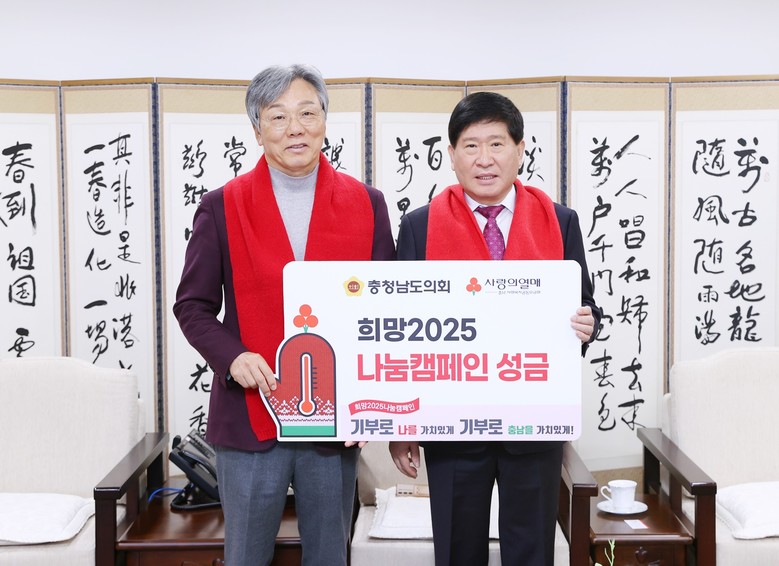 충남 사회복지공동모금회 성우종 회장은 "충청남도의회의 따뜻한 마음이 전해져 지역사회에 큰 힘이 될 것”이라며 “소중한 성금은 꼭 필요한 곳에 잘 전달하겠다”고 감사의 뜻을 전했다.