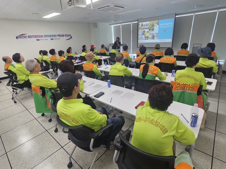 [세종 세계타임즈=이채봉 기자] 세종특별자치시(시장 최민호)가 20일 세종테크노파크에서 지역자율방재단원 30명을 대상으로 재난현장 심리지원 역량 강화를 위한 ‘심리적 응급 처치 전문교육’을 실시했다.