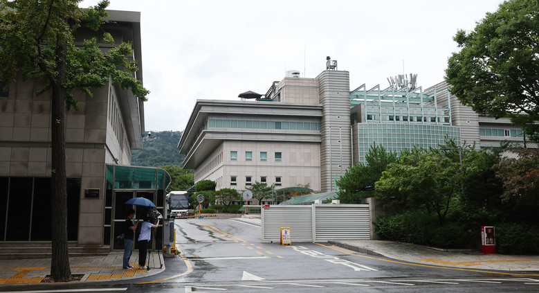 검찰이 김건희씨를 방문 조사한 것으로 알려진 청와대 인근 대통령경호처 부속 청사에서 23일 시민들이 오가고 있다. 2024.7.23[사진=연합뉴스]