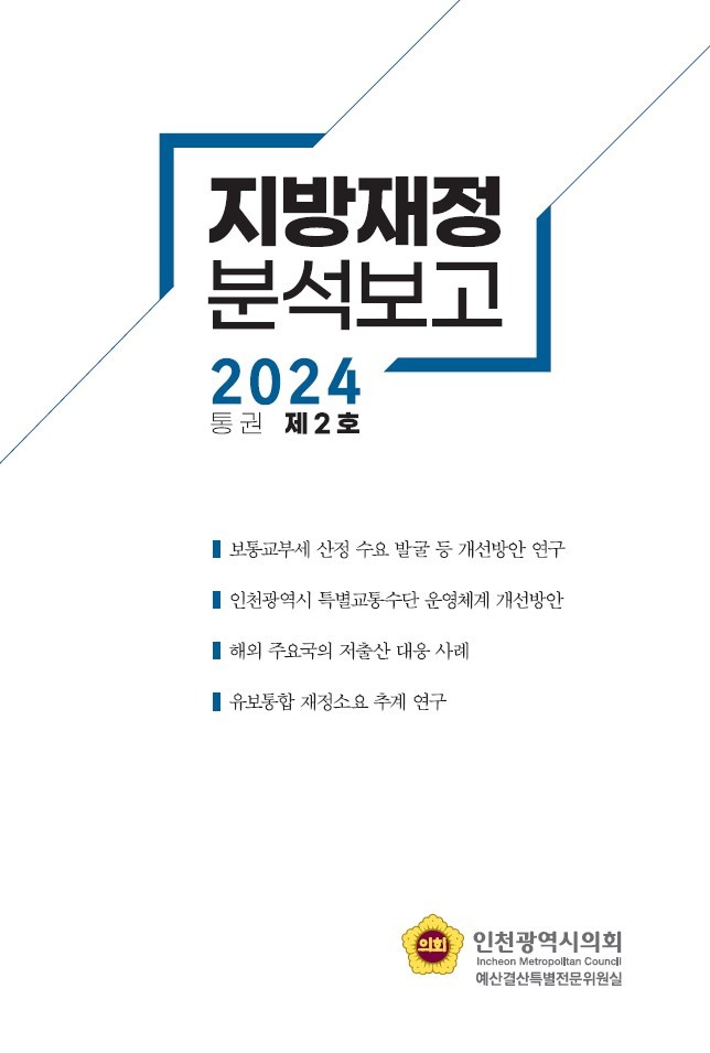 이번 분석보고서는 지방재정과 관련된 국내의 우수 논문, 연구 및 분석보고서를 소개하고 이를 인천시 정책에 반영하는 정책제언을 목적으로 제작했다.
