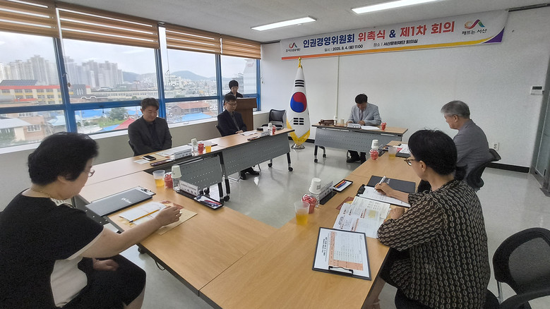 회의에서는 위원장인 서산문화재단 임진번 대표이사의 주재로 참석 위원에 대한 위촉장 수여가 이뤄졌으며, 이어 위원 호선을 통해 윤여준 위원(전 태안교육지원청 교육장)이 부위원장으로 선출됐다. 이후 인권경영 추진 방향에 대한 논의가 이어졌다.