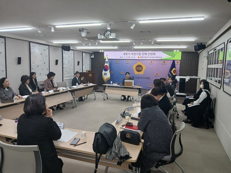 [세종 세계타임즈=이채봉 기자] 세종특별자치시의회(의장 임채성) 산업건설위원회(위원장 김재형)는 21일 시의회 청사 대회의실에서 행정복지위원회 여미전 의원과 함께 세종시 여성기업 단체와의 간담회를 개최했다.