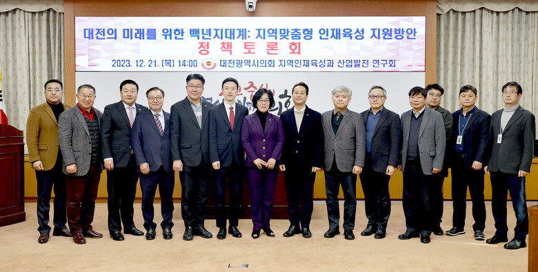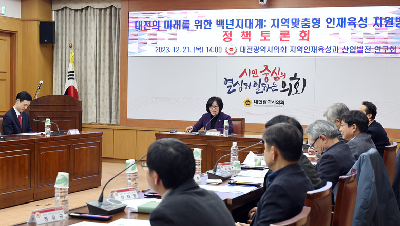 [대전 세계타임즈=이채봉 기자] 대전시의회 지역인재육성과 대전산업발전 연구회(회장 박주화 의원)는 21일 ‘대전의 미래를 위한 백년지대계: 지역맞춤형 인재육성 지원방안’을 주제로 정책토론회를 개최했다.