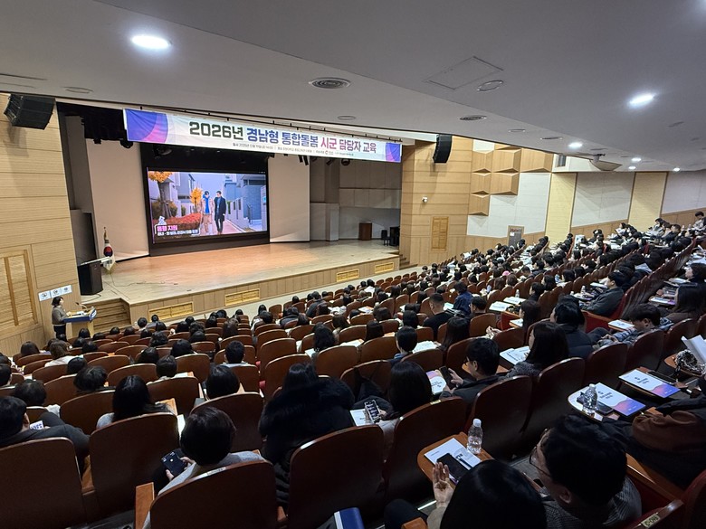 이번 교육에는 도내 시군과 읍면동에서 통합돌봄 업무를 수행하는 공무원 450여명이 참석해, 2026년 경남형 통합돌봄 사업 운영 지침과 읍면동 중심 실행체계에 대한 이해를 높이는 시간을 가졌다.