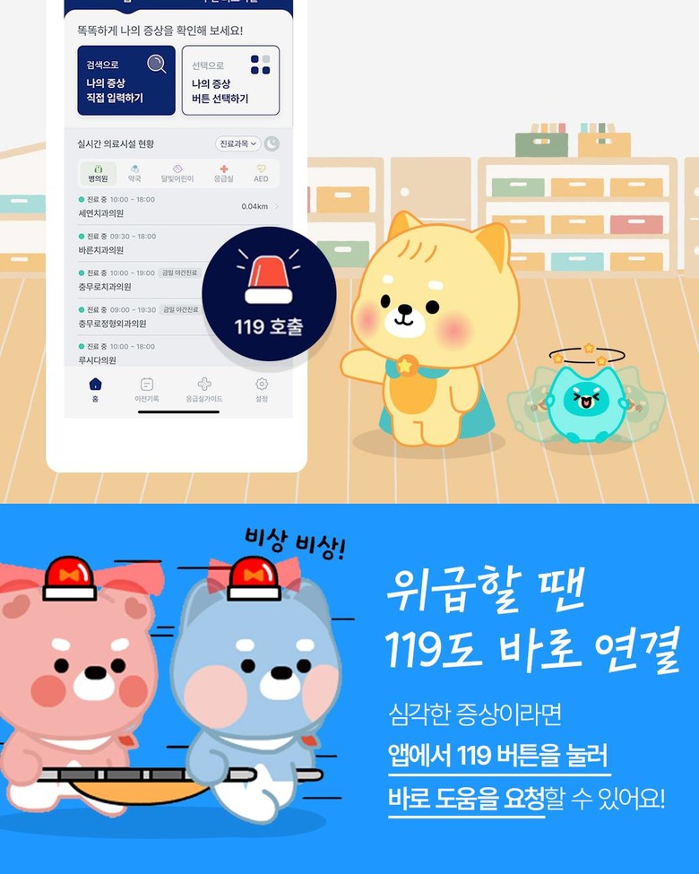 또한, 위치 기반 안내를 통해 가까운 의료기관을 쉽게 확인할 수 있어 불필요한 응급실 방문을 줄이고, 환자가 적합한 의료기관에 신속히 도착할 수 있도록 돕는다. 해당 앱은 구글 플레이스토어와 애플 앱스토어에서 내려받아 이용할 수 있다.