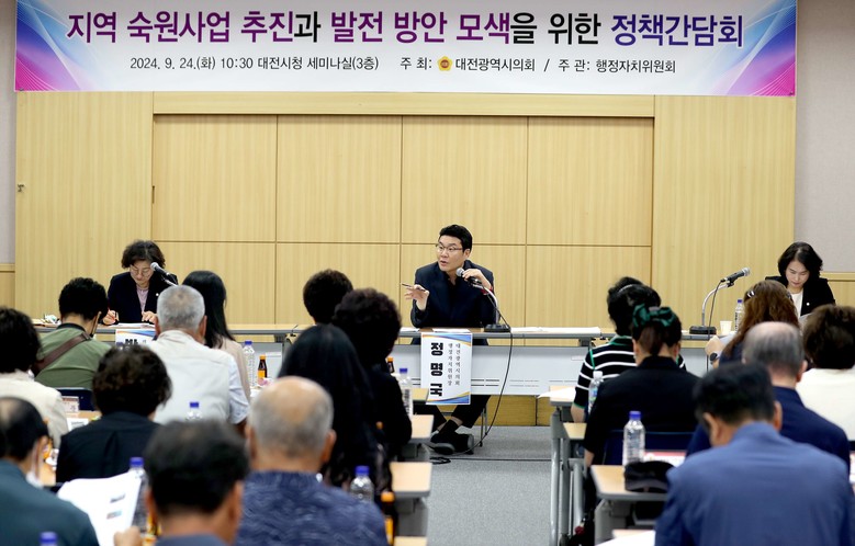 [대전 세계타임즈=이채봉 기자] 대전시의회 행정자치위원회 정명국 의원(국민의힘, 동구 3)은 24일 대전시청 세미나실에서 ‘지역 숙원사업 추진과 발전 방안 모색을 위한 정책간담회’를 개최했다.