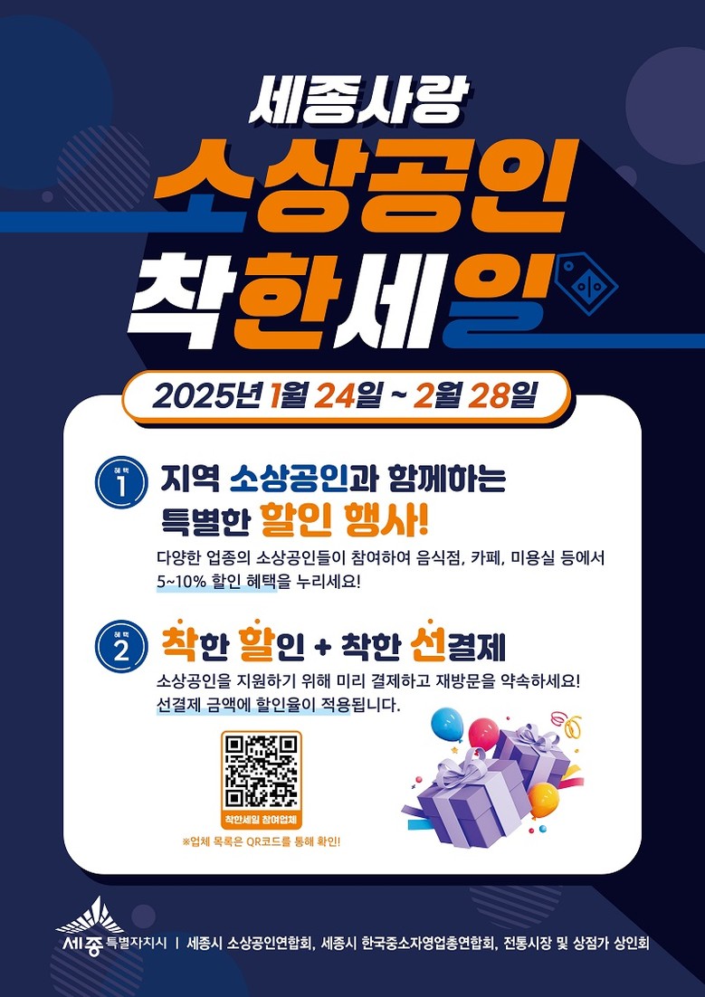 시는 오는 24일부터 내달 28일까지 소상공인 주도 특별행사 ‘세종사랑 소상공인 착한세일’을 진행한다.