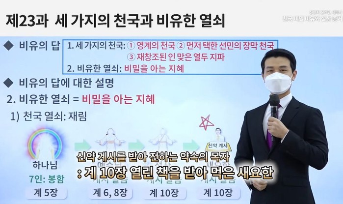 그리고 그것을 받아 전한 사람이 신약의 계시 책을 받은 사람이다. 받아 전하는 그 계시 책이 바로 계시록 10장에서 천사가 준 열린 책이 되겠다. 정리해보면, 천국 열쇠라는 것은 비유로 봉함된 천국 비밀을 아는 지혜가 되겠다.