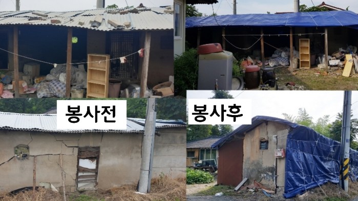 천정훈 집수리봉사단장은 “지붕천막 봉사 후 좋아하시는 98세 독거어르신의 모습에서 봉사자로서 행복과 보람을 느낀다.”고 말했다.