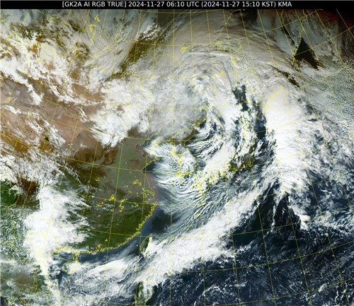 27일 오후 3시 10분 한반도 주변 위성 영상. [국가기상위성센터 제공]