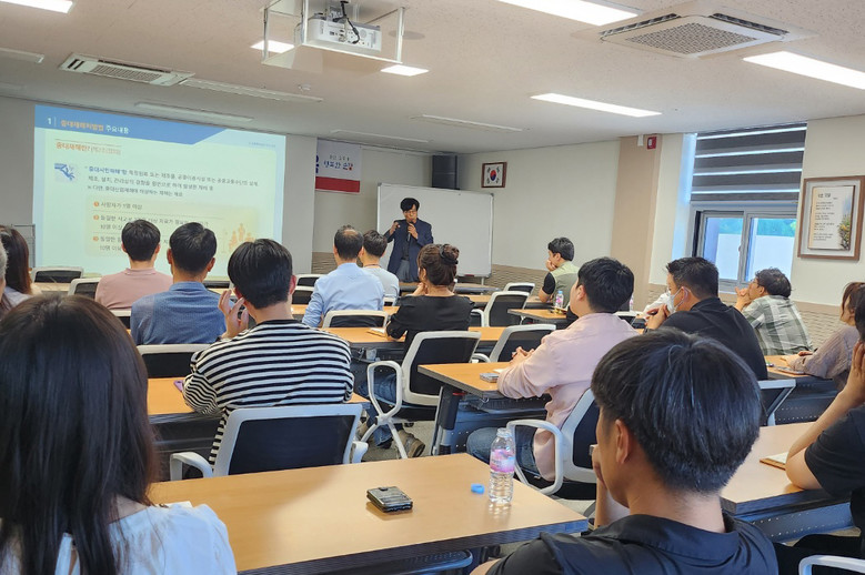이번 교육은 각종 군 발주공사 담당자들과 현업사업장 등 주요 시설물 관리자 등 직접 현장에서 사업을 담당하는 중대재해 실무자들을 대상으로 한국산업안전보건공단 전북지역본부에서 전문강사를 초청해 진행했다.