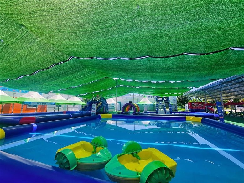 ‘어린이 물놀이장’은 충북아쿠아리움을 찾은 어린이들이 안전하고 재밌게 즐길 수 있도록 워터슬라이드 풀장, 분수터널, 워터바이크 등 다양한 놀이시설을 갖추고 있으며, 어린이들의 안전한 물놀이를 위해 운영본부와 안전요원 배치 및 안전 관련 보험도 가입되어 있어 안심하고 물놀이를 즐길 수 있다.