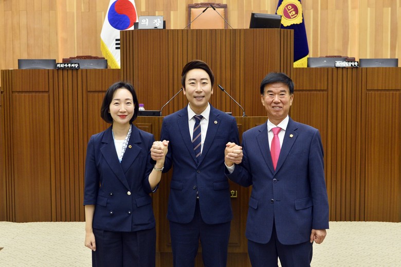 이날 본회의에서 무기명 투표 방식으로 의장단 선거를 실시한 결과 임채성 의원이 의장에 당선됐으며, 김효숙 의원은 제1부의장, 김동빈 의원은 제2부의장으로 선출됐다.