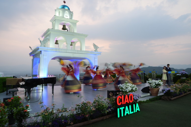 [춘천시 세계타임즈=김민석 기자] 제5회 챠오! 이탈리아 개막식이 지난 7일 저녁 산토리니 야외무대에서 한-이탈리아 친선 음악회와 함께 열렸다. 이번 개막식은 춘천시립합창단과 국내 정상급 성악가 바리톤 송기창, 소프라노 김순영, 그리고 이탈리아 성악가와 클래식 연주자들의 무대는 초여름 밤하늘을 울리는 깊은 감동으로 관객들의 박수 갈채를 받았다.
