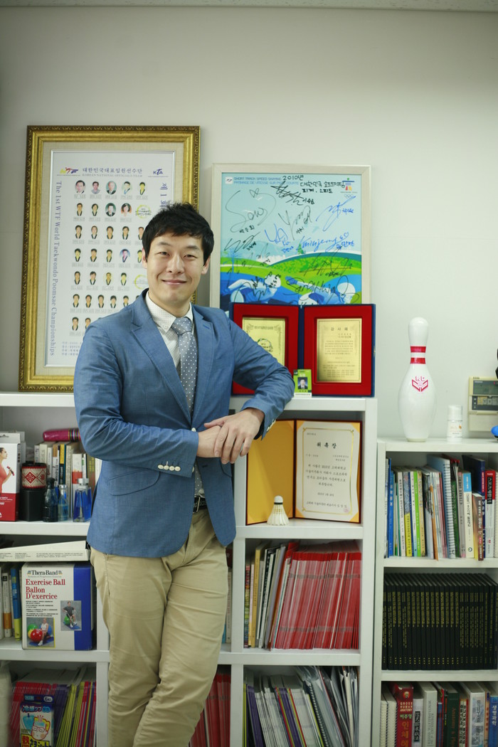 “국가대표팀에서 오랫동안 트레이닝을 담당하다 보니 부상을 예방하고 안정적으로 훈련할 수 있는 방법에 대한 고민을 많이 했습니다. 근육을 안정적으로 지지해주고 다리의 혈액순환을 원활히 할 수 있는 피트니스복의 필요성을 느꼈고, 제품 개발에 관련된 아이디어가 떠오르면 늘 메모해뒀었죠. 2013년 고려대에서 석사과정을 밟고 있을 때 고대 기술지주회사가 창업 경진대회를 열었고, 종아리 근육을 잡아주고 안정성을 높여주는 보조 압박대로 입상할 수 있었습니다. 근육의 라인을 따라 테이핑 처리가 되어있어 사용자가 운동할 때 근 기능을 향상시켜주는 제품이었습니다. 이후 고대 기술지주회사의 지원을 받아 시제품을 완성할 수 있었고, 경영 컨설팅을 받아 창업에 성공했습니다.”