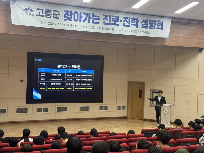 이번 설명회는 총 3회에 걸쳐 진행됐으며, 7월 9일과 10일에는 녹동고등학교 1, 2학년을 대상으로, 15일에는 고흥고등학교 3학년을 대상으로 열렸다. 학년별 입시 제도 변화에 맞춘 맞춤형 입시전략 강연이 진행돼 학생들로부터 높은 관심과 호응을 얻었다.