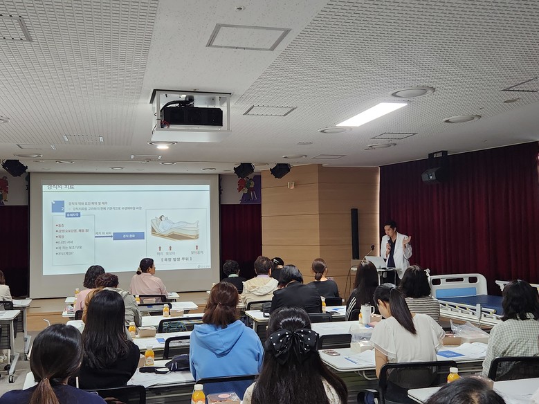 김영은 물리치료사는 첫 강의에서 낙상 예방을 위한 근력·균형운동을 소개하며 요양시설에서 적용할 수 있는 스트레칭과 운동법을 설명했다. 이어 와상환자의 관절가동범위(ROM) 운동법을 간단한 실습으로 진행해 참석자들이 실제 돌봄에 바로 활용할 수 있도록 했다.