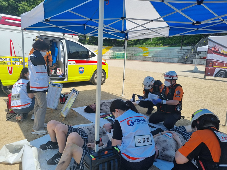 이날 훈련은 사전예고와 예행연습 없이 진행됐으며, 대구 ○○대학교 체육대회 행사 중 원인을 알 수 없는 폭발로 인한 화재 및 붕괴사고를 가정해 △현장응급의료소 설치, △환자 분류 및 분산이송, △사상자 추적 및 정보 관리까지 전 과정을 실시간으로 수행하는 방식으로 이뤄졌다.