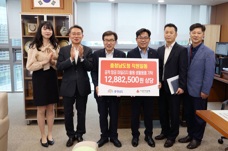 도는 24일 도청 정무부지사실에서 전형식 정무부지사와 유병설 충남사회복지공동모금회 사무처장 등이 참석한 가운데, ‘공적 항공마일리지 활용 물품 전달식’을 개최했다.