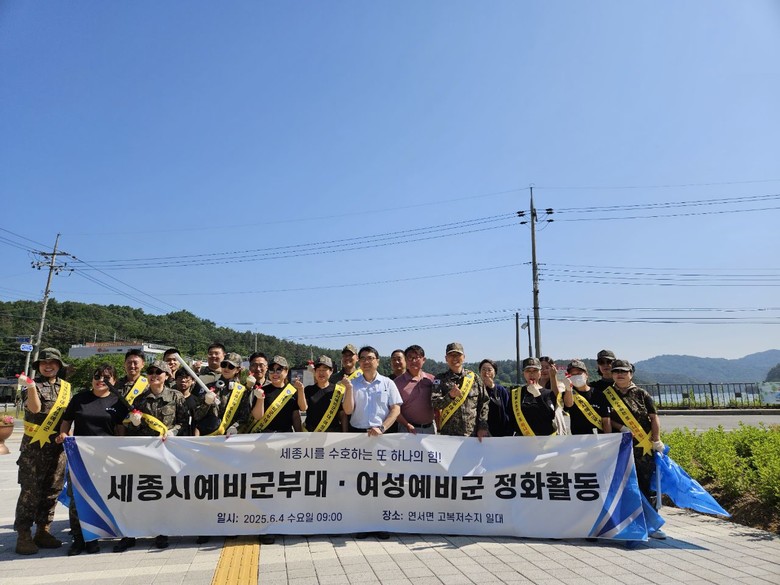 이번 환경정화활동은 세종시 예비군부대 및 여성예비군 등 30여 명이 동참해 1t 가량의 생활폐기물을 수거했다.