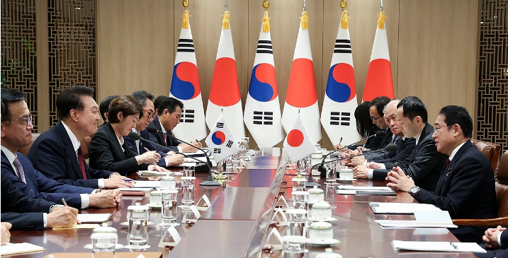 [세계타임즈 = 이채봉 기자] 윤 대통령은 기시다 후미오 일본 총리에게 한일관계 개선 성과를 바탕으로 한일 국교 정상화 60주년인 2025년에 한일 관계를 한층 도약시키는 역사적 전기가 마련되도록 합심해서 준비하자고 말했다.윤 대통령은 대통령실에서 제9차 한일중 정상회의 참석차 방한한 기시다 총리와 정상회담을 열어 우리 두 사람의 견고한 신뢰를 기반으로 지난 한 해 각계 각급에서 교류가 크게 증진됐다며 이같이 밝혔다.윤 대통령은 지난해 3월 12년 만에 한일 셔틀외교를 재개한 이후 1년 남짓한 기간에 각각 두 번씩 양국을 오가게 된 것을 기쁘게 생각한다며 특히 4년 5개월 만에 개최되는 한일중 정상회의를 계기로 서울에서 다시 뵈어 더욱 반갑다고 환영했다.윤 대통령은 기시다 총리와의 합의에 따라 양국 정부 간 합의체가 복원되고, 양국 인적 교류가 올해 역대 최고 수준을 기록할 것으로 예상되는 점을 언급하며 이처럼 한일관계 개선 성과가 착실히 쌓이고 있는 것을 대단히 기쁘게 생각한다고 덧붙였다.기시다 총리는 1년 전 일본의 총리대신으로서 12년 만에 한국을 방문했고, 이후 윤 대통령을 일본 히로시마로 모셨다. 이번에 신록의 서울을 다시 방문해 아주 기쁘다며 제가 세봤는데 오늘이 10번째 대면회담이라고 화답했다.기시다 총리는 대면회담 이외에도 대화, 통화 등 계속 긴밀히 소통하고 있어 대단히 기쁘다며 이러한 정상 간 신뢰를 바탕으로 앞으로도 셔틀 외교를 지속해 나가자고 밝혔다.2025년에 일한 국교정상화 60주년을 맞아 양국 관계를 더 도약시키기 위해 윤 대통령과 제가 각각 정부에 지시해 준비를 추진하길 바란다며 국제사회가 역사적 전환점에 있는 가운데 자유롭고 열린 인도·태평양을 유지·강화하며 글로벌 과제에 효과적으로 대처하기 위해서도 양국 공조를 한층 더 긴밀하게 하길 바란다고 강조했다.윤 대통령 취임 후 한일 정상회담은 10번째다. 윤 대통령이 지난해 3월 일본을 방문하며 한일 셔틀 외교를 복원한 이후 지난해에만 7차례 정상회담을 했다.두 사람은 지난해 11월 16일 아시아태평양경제협력체(APEC) 정상 회의 참석차 미국 샌프란시스코에서 대좌한 이후 약 6개월 만에 다시 만났다.기시다 총리의 한국 방문은 지난해 5월 서울에서 열린 한일 정상회담 이후 1년 만이다.