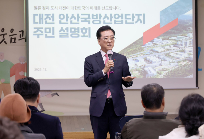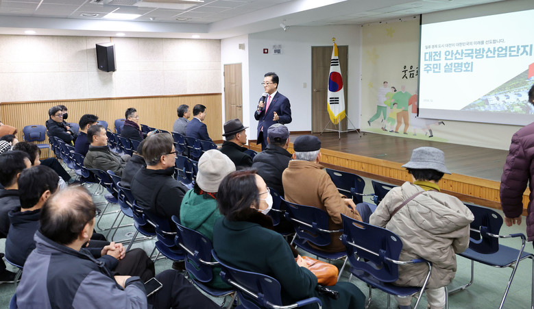 안산 국방산업단지는 48만 평, 총 1조 4천억 원이 투입되는 대전의 미래 국방·첨단산업 핵심 프로젝트로, 이날 주민설명회는 사업개요, 그동안 추진 상황, 보상절차 및 시기 등 향후 계획 순으로 진행됐고, 소관부서의 설명이 끝난 뒤에는 주민들의 자유로운 질의응답 시간으로 이어졌다.