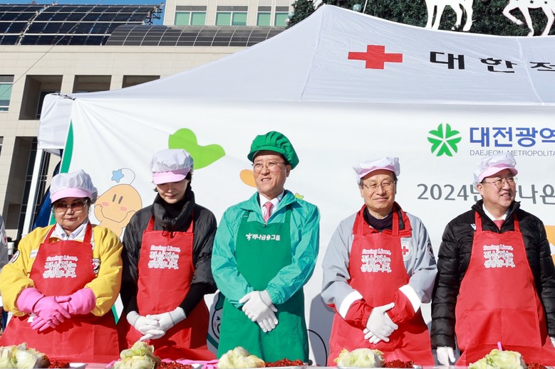 [대전 세계타임즈=이채봉 기자] 대전시의회 조원휘 의장은 3일 시청 남문광장에서 열린 ‘온정으로 하나되는 사랑의 김장나눔’ 행사에 동참했다. 이날 조원휘 의장은 추운 날씨에도 자리를 함께한 자원봉사자들에게 감사와 격려를 전하고, “작은 나눔의 마음들이 모여 우리 사회에 온정이 넘치길 바란다”고 밝혔다.